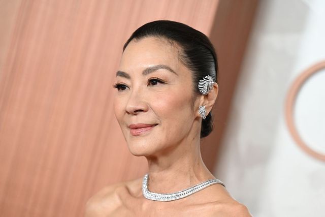 지난해 오스카 시상식 여우주연상을 수상한 양자경은 카리스마 넘치는 드레스 룩으로 시선을 모았다. 레드 카펫과 선명한 대조를 이루는 발렌시아가의 블루 드레스에 볼드 한 주얼리를 더했다. 비대칭 디자인으로 한 쪽 귀를 뒤에서 감싼 플럼 드 파옹(plum de Paon) 이어링과 링, 그리고 리버스 타이 네크리스를 더해 관록이 느껴지는 시상식 룩의 정석을 보여주었다.