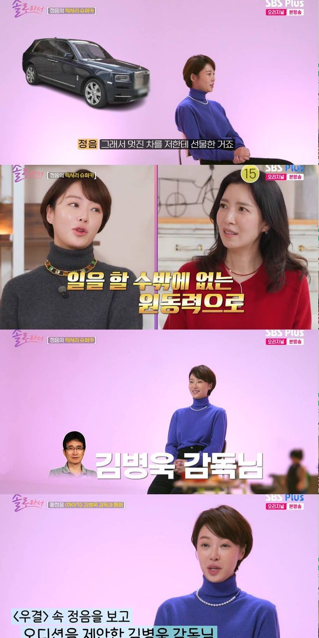 황정음은 "우리 아들과 멋진 차 타면서 행복한 인생을 살고 싶어서, 불행한 나 자신에게 벗어나고 싶어서. 그에게 맞는 차를 샀다"며 "지금 저에게 있는 돈보다, 제가 벌 돈을 써버린다. 악순환을 만들어버린다"며 원동력을 만든다고 전해 웃음을 자아냈다. 슈퍼카를 구매해 후회한 적 있냐는 물음에 "절대없다"고 답했다.