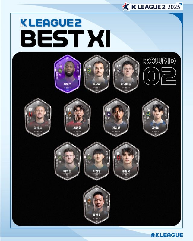 [하나은행 K리그2 2025 2R MVP, 베스트 팀/매치, 베스트11]