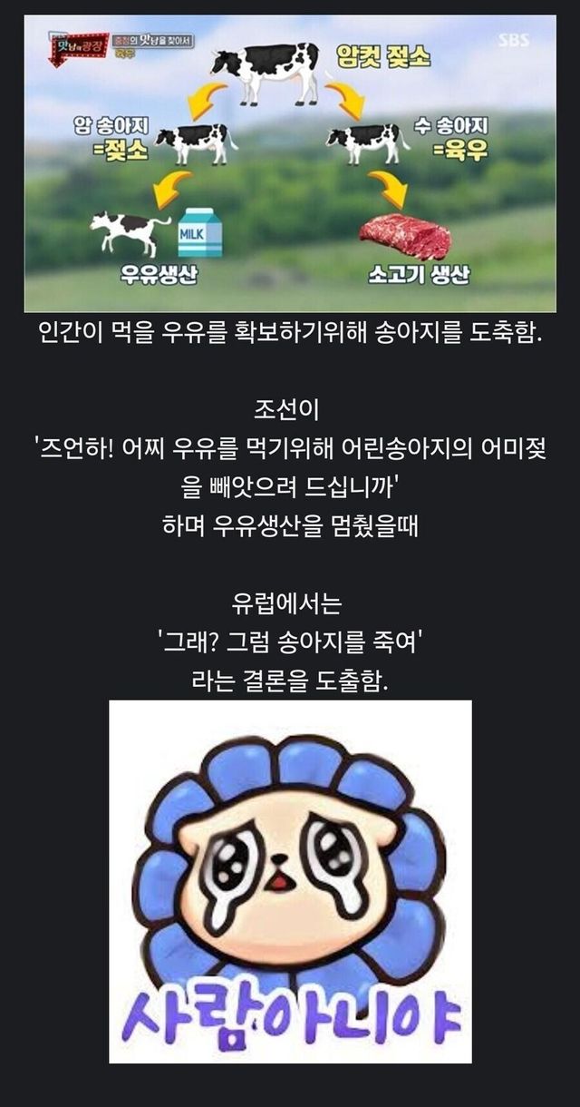 홀스타인종이라는 돌연변이가 나오기 전까지 인간이 우유를 안정적으로 얻는건 어미 소가 송아지를 출산한 이후 우유 '경쟁자'를 제거하는 것이었다.
