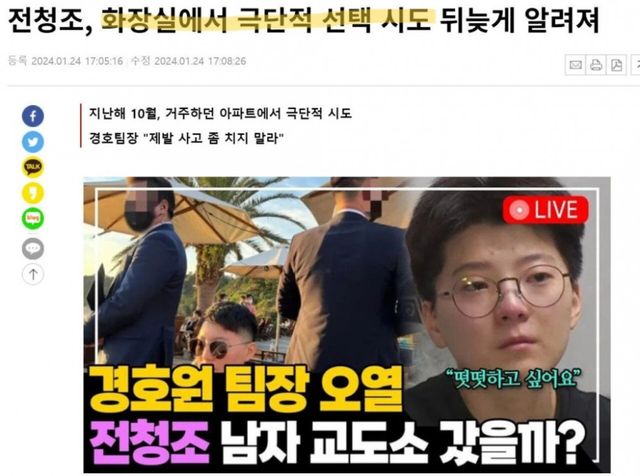 극단적 선택을 시도하다가 그만 화장실 통유리쪽으로 떨어졌다.