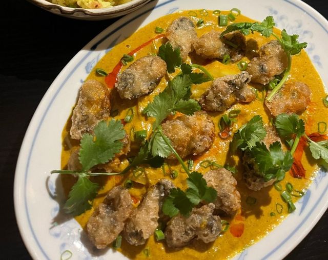 한 입 먹으면 바삭한 튀김과 크리미한 소스가 조화롭게 어우러진다. 달콤하고 짭조름한 커리 향이 굴의 감칠맛을 극대화해, 밥과 함께 먹으면 더욱 맛있다.