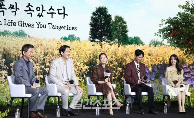 아이유 역시 “우리 영화 영제가 ‘When Life Gives You Tangerines’다. ‘폭싹 속았수다’는 인생이 얼마나 떫은 귤을 주든 그걸로 귤청 만들어서 따뜻한 귤차를 만들어 주는 드라마”라며 “바쁘신 와중 따뜻한 귤차를 드시면서 인생을 차분하게 바라보는 시간을 가졌으면 한다”고 덧붙였다.