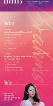 한편 이번 무대에서 그녀는 브람스 바이올린 협주곡의 기교적 아름다움과 깊이 있는 서정을 연주한다.