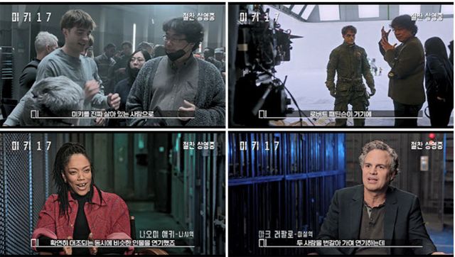 공개된 영상에는 같은 얼굴, 같은 이름, 같은 기억을 가지고 있지만 확연히 다른 ‘미키 17’과 ‘미키 18’, 두 인물을 완성하기 위해 고군분투한 촬영 비하인드가 담겼다. 로버트 패틴슨은 “굉장히 다른 두 사람을 연기하는 건 정말 어렵지만 동시에 무척 재밌다”라며 연기를 할 때에도 상반되는 두 감정을 동시에 느꼈음을 밝혀 흥미를 자아낸다. 여기에 “봉 감독님은 정말 재능 있는 분인데 그야말로 불가능을 가능케 한다”(로버트 패틴슨), “’미키’를 진짜 살아 있는 사람으로 풍성하게 만들어 준 건 백 퍼센트 롭(로버트 패틴슨)이다” (봉준호)라는 두 사람의 말은 로버트 패틴슨의 풍성한 연기와 봉준호 감독의 독보적 연출이 만나 입체적이고도 매력적인 ‘미키’가 탄생할 수 있었음을 짐작케 한다.