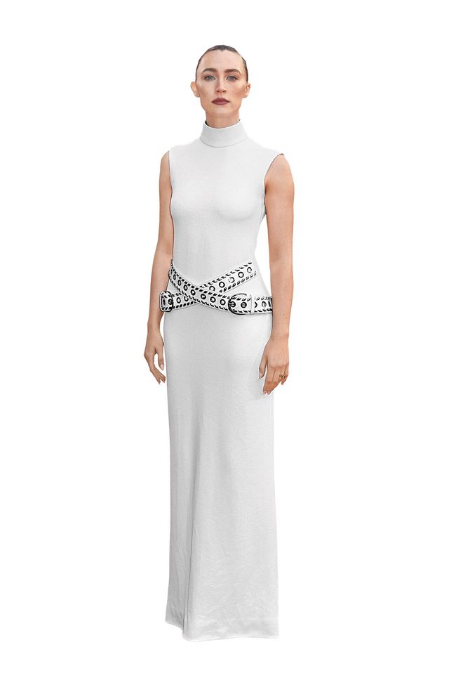 왼쪽부터 : 루이 비통을 입은 시어셔 로넌, 루아르를 입은 리치 샤잠, 로에베의 벨트를 한 메타의 에바 첸, 클로에를 입은 칼리 클로스, 키코 코스타디노브의 2023 가을 컬렉션, 호다코바를 입은 메이지 윌리엄스.