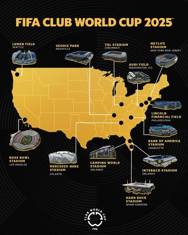 첫 개최국은 미국이다. FIFA는 지난해 미국을 개최지로 선정하면서 총 12개 구장에서 경기를 치르기로 했다. 하드록 스타디움을 포함해 로즈볼 스타디움(패서디나), 메르세데스벤츠 스타디움(애틀랜타), 뱅크 오브 아메리카 스타디움(샬럿), TGL 스타디움(신시내티), 지오디스파크(내슈빌), 아우디 필드(워싱턴 DC) 등이 포함됐다.