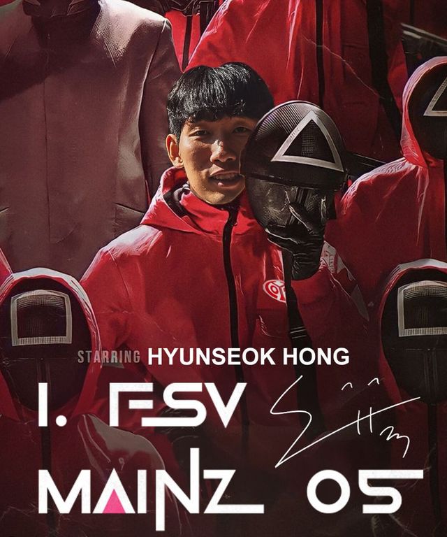 오징어게임을 패러디한 이미지로 홍현석의 영입을 발표했던 마인츠05. 사진=마인츠05