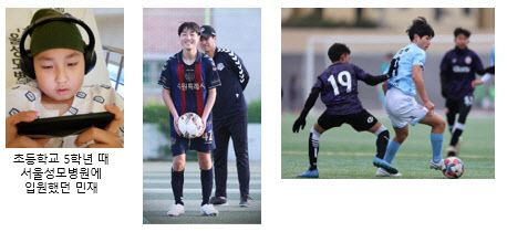 평소 운동뿐 아니라 공부도 노는 것도 잘했던 민재였지만, 갑자기 시작된 투병 생활은 힘들었다. 아픈 몸을 치료하기 위한 항암치료 과정에서 무엇보다 가장 힘들었던 것은, 좋아하는 축구를 앞으로 못할 수도 있다는 두려움이었다. 머리를 다 밀고 병원에서 치료받는 동안, 민재는 축구 전지훈련 중인 친구들 생각에 매일 울었다고 한다.