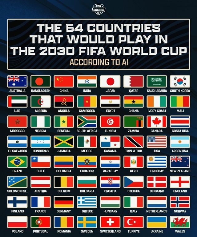 미국의 '폭스사커'는 대표적인 AI 프로그램 '챗GPT'에게 2030년 대회 참가국이 64개국으로 늘어날 경우의 본선 진출국 예상을 부탁했는데 2002년 대회 이후 한 번도 본선에 오르지 못했던 중국은 물론, 인도와 방글라데시, 솔로몬 제도 등을 참가국으로 꼽아 화제가 됐다.