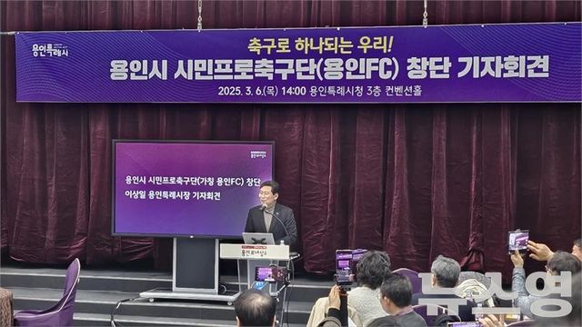이상일 시장이 용인시 프로축구단 창단을 선언하는 기자회견을 하고 있다./사진=뉴스영