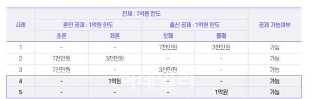 A씨가 결혼할 때, 첫째 아이를 낳았을 때 재산증여를 한 푼도 받지 않았다고 가정할 경우 둘째 아이 출산 때에 1억원을 증여 받아도 세금을 내지 않아도 된다. 결혼하면서 부모로부터 3000만원을 받았다면 둘째 아이 출산 때엔 7000만원까지 세금 없이 증여 받을 수 있다.