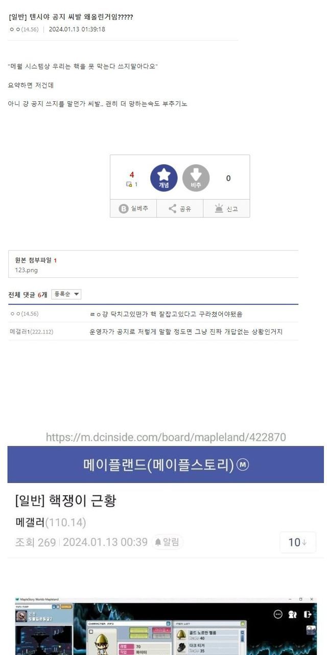핵때문에 렉도 있는거다, 핵때문에 메소 미친듯이 풀려서 시세 작살났다, 이러다 겜 망한다 등등 이거로 지금 엄청 시끄러움