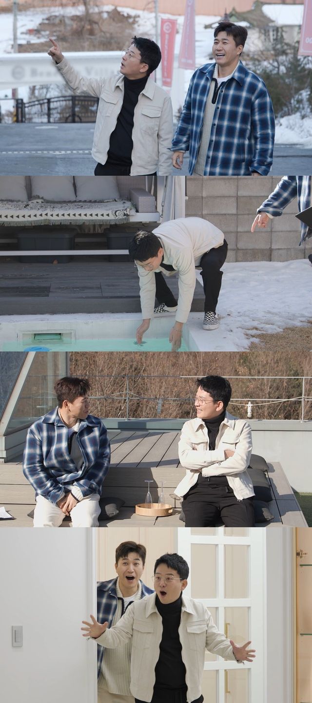 두 사람은 신혼부부의 설렘을 제대로 자극하는 수영장과 북한산 뷰를 보장하는 옥상을 갖춘 주택부터, ‘골프 러버’인 두 사람의 취향을 제대로 저격하는 옵션을 갖춘 집까지 구경하며 연신 환호했다. 드라마 ‘더 글로리’ 속 재벌 전재준이 살던 단지까지 찾은 두 사람은 집안에 구비된 엘리베이터와 히노끼탕을 보고 놀라움을 감추지 못했고, 스튜디오에서도 역대급 호응이 쏟아졌다. ‘옵션 끝판왕’ 집을 구경하던 김준호는 “여기는 결혼 약속을 안 잡아도 결혼하겠다”라며 벌어진 입을 다물지 못했다. 김준호와 김종민은 이내 서로 계약 희망 의사를 밝히며 ‘신혼집 계약 오픈런’을 예고했다는 후문이다. 예비 신랑 김종민과 김준호가 픽한 신혼집은 방송을 통해 확인할 수 있다.