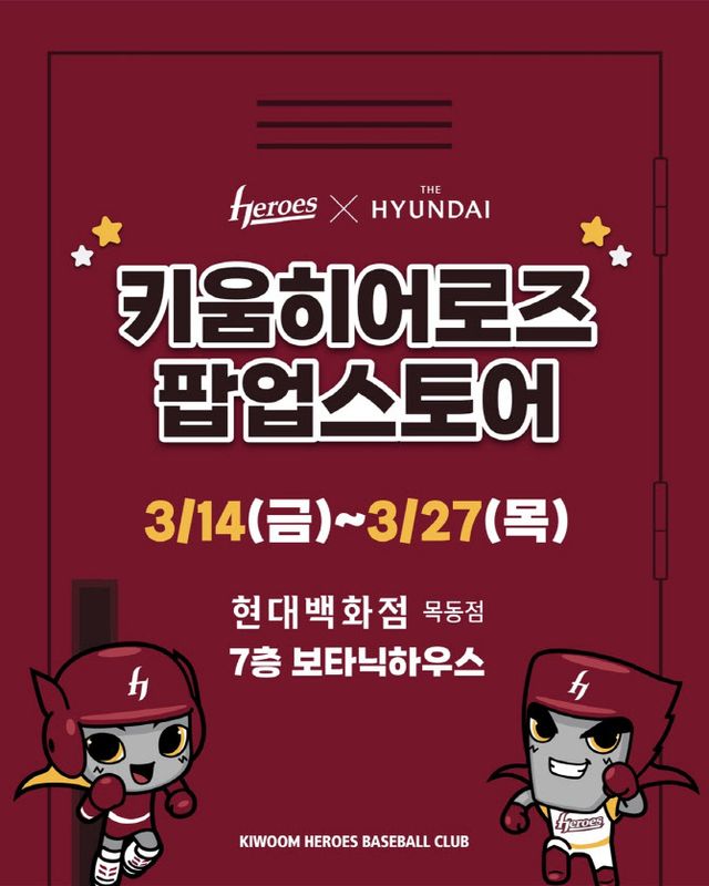 [이데일리 스타in 이석무 기자] 키움히어로즈가 오는 14일부터 27일까지 현대백화점 목동점 7층 보타닉하우스에서 팝업스토어를 운영한다.
