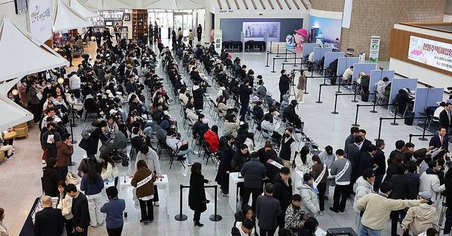 지난 6일 인천시청 중앙홀에 마련된 천원주택 접수처에서 예비 입주자들이 신청 접수를 하고 있다 / 연합뉴스