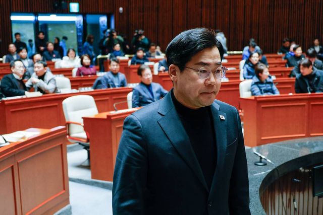 박찬대 더불어민주당 원내대표가 지난 8일 오후 서울 여의도 국회에서 열린 윤석열 대통령 석방 관련 비상 의원총회에서 모두 발언을 하기 위해 단상으로 향하고 있다 / 뉴스1