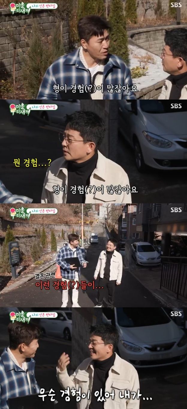 김종민은 "내가 형과 같이 온 게, 형이 경험이 많지 않나. 이런 (결혼 관련)경험들이"라고 짚으며 김준호의 과거를 언급했다.