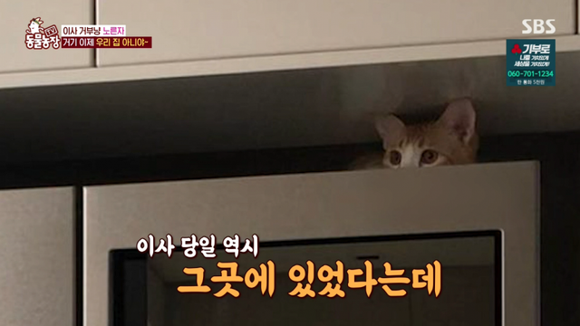 이사하는 날 이삿집 센터 직원 보고 놀라서 천장으로 도망갔다고 함.