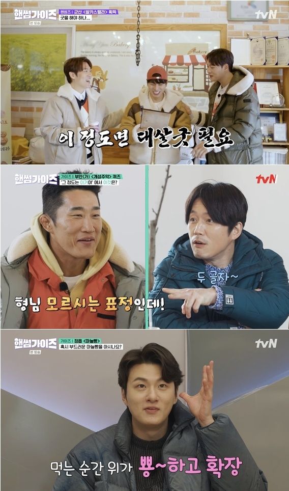 이후 임실의 치즈케이크를 야무지게 탐방한 '핸썸즈'는 결전의 퀴즈에 돌입했고, 생각보다 훨씬 어려운 난이도에 '핸썸즈' 모두가 쩔쩔맸다.