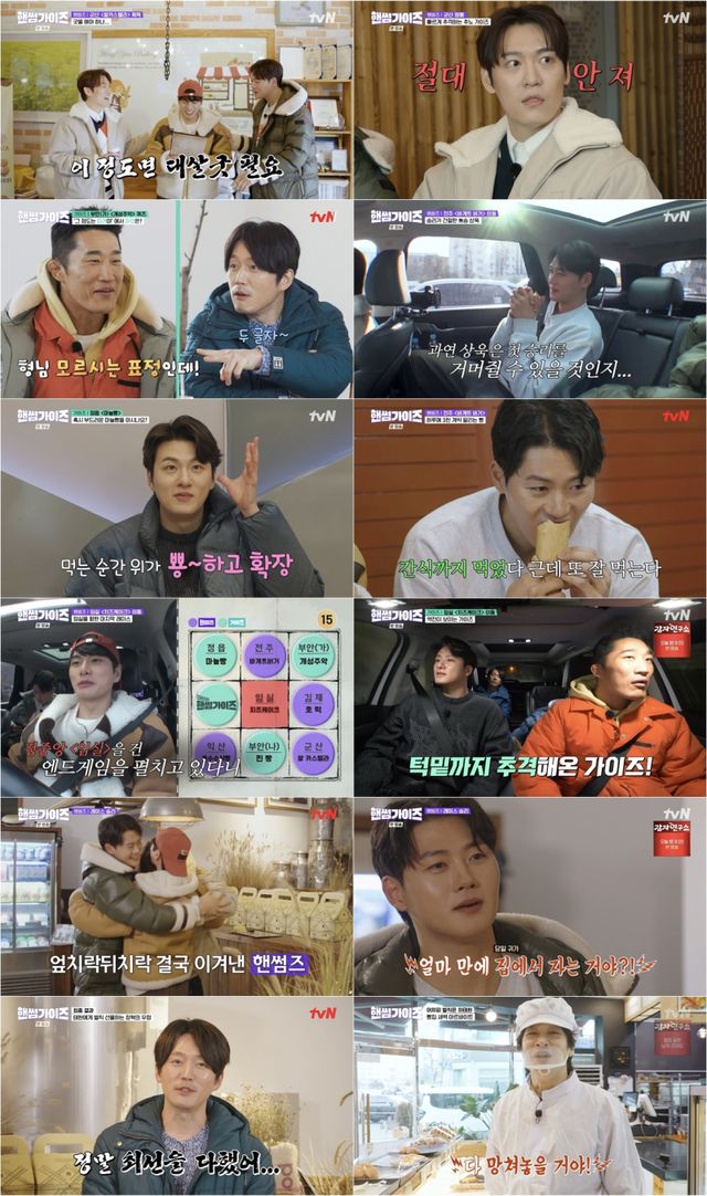 지난 9일 방송된 tvN ‘햄썸가이즈’에서는 ‘핸썸즈’ 이이경, 오상욱, 존박과 ‘가이즈’ 김동현, 신승호, 장혁이 ‘전북의 빵지순례 빙고 레이스’의 승리팀이 되기 위해 초박빙의 대결을 펼쳤다.