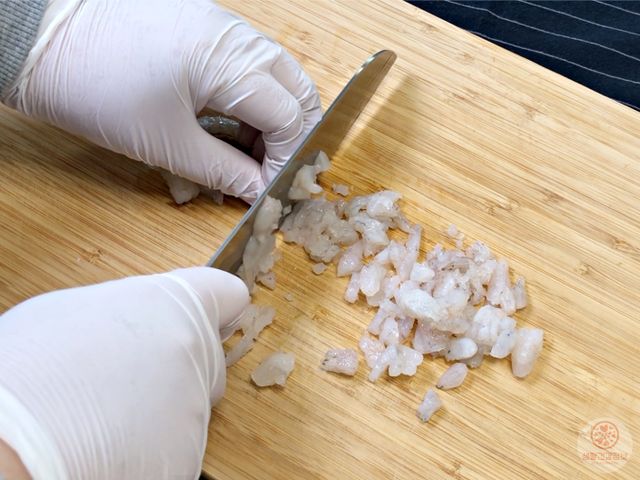 새우도 적당히 씹는맛이 나도록 작게 썰어주세요.