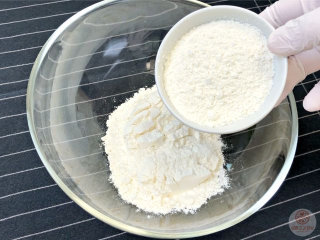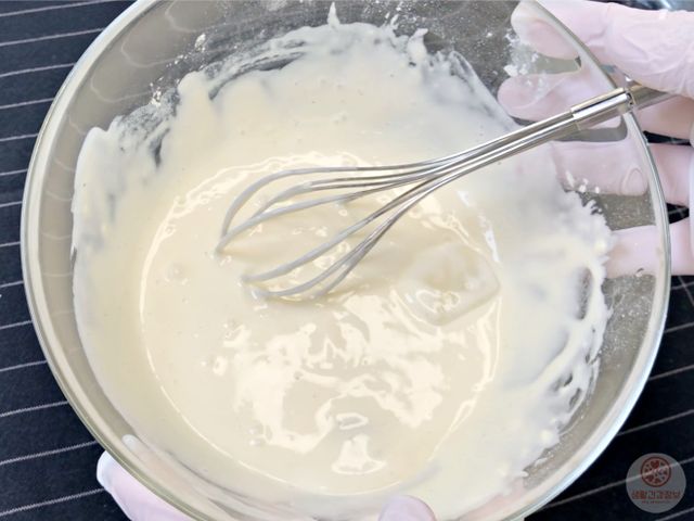 물을 조금씩 부어가면서 농도를 맞춰주세요.