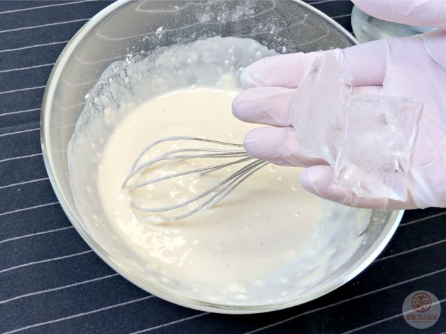 얼음물을 쓰면 반죽이 훨씬 바삭하고요.