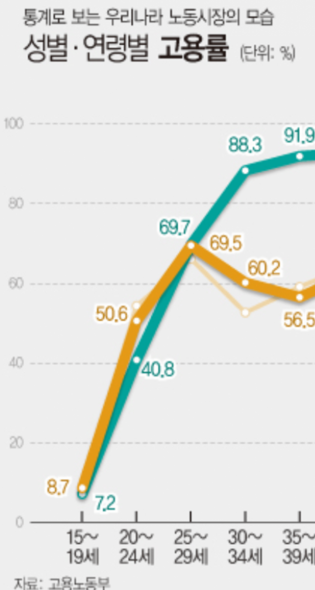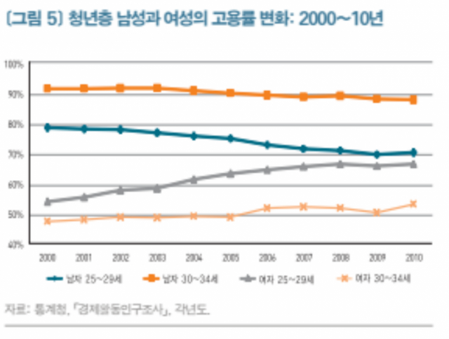 그럼에도 취업지옥이 되어 사회적 비용이 발생한 건 여성의 고용시장 진출과 맞물림