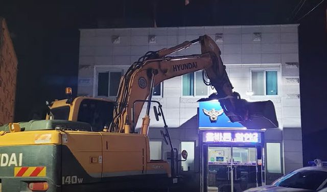 이를 본 경찰관들이 황급히 뛰어나가자, 굴착기 안에서 50대 남성 A씨가 내렸다.