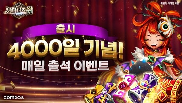 컴투스는 11일 ‘서머너즈 워: 천공의 아레나(이하 서머너즈 워)’에서 출시 4,000일을 앞두고, 최대 4,000개 아이템 선물을 받을 수 있는 대규모 이벤트를 실시한다고 밝혔다.