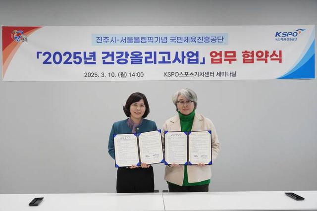 지난 10일 KSPO 스포츠가치센터에서 열린 업무협약식에는 임은경 체육공단 스포츠인재실장과 황혜경 진주시 보건소장이 참석해 스포츠를 통한 지역 청소년의 건강한 성장을 위해 힘을 모을 것을 약속했다.