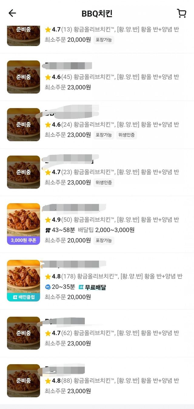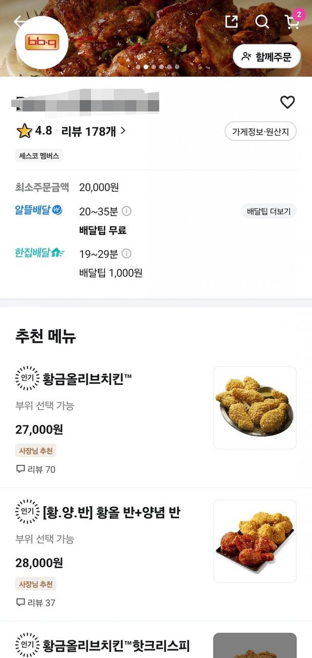 (배민배달,가게배달로 나눠진 같은 매장임)