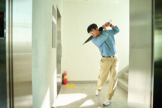 공개된 스틸은 골프에 관심 없던 스타트업 대표 창욱이 로비 골프를 위해 일상 속에서 틈틈이 스윙 연습을 하는 모습과 마침내 골프장에서 골프를 치게 되는 모습을 담고 있어 눈길을 끈다. 먼저 빗자루나 우산 등 일상 속에서 쉽게 접하는 물건들을 갖고 스윙 연습을 하는 창욱의 모습은 실제 골프를 치는 관객뿐 아니라 골프에 대해 전혀 알지 못하는 관객 역시도 공감할 만한 포인트로 극 중 창욱이 로비 골프를 위해 얼마나 절박한 감정으로 고군분투할지 궁금증을 불러일으킨다.