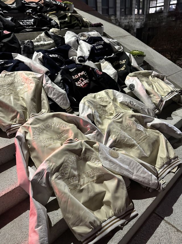 금오공대랑 통합 추진에 학생들이 과잠을 놓는 것로 반대 시위중