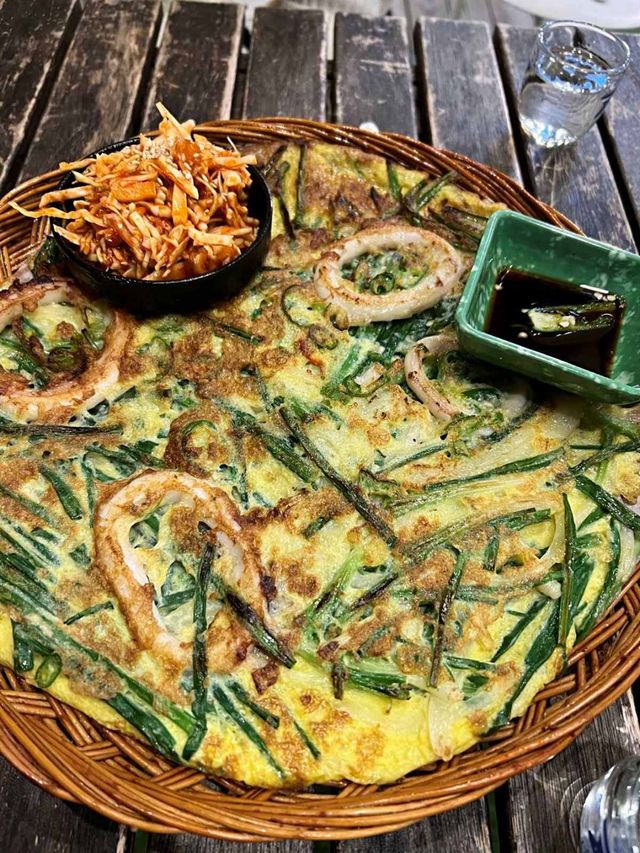 부침개를 시키면 부산답게 오징어 초무침과 함께 곁들여 먹는 조합도 즐길 수 있다. 상큼하고 새콤한 초무침을 한입 먹고, 바삭한 부침개 한입, 해물 향이 진한 진한 칼국수를 곁들이면 입안 가득 식감이 어우러진다.