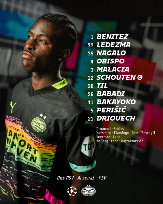 원정팀 PSV도 같은 전형으로 맞섰다. 왈테르 베니테즈 골키퍼가 장갑을 꼈고 타이럴 말라시아. 아르반도 오비스포, 아다모 나갈로, 이차드 레데즈마가 수비륵 구축했다. 중원은 이삭 바바디, 메르디 스카우턴, 후스 틸이 지켰다. 측면에 쿠아이브 드리우시, 요한 바카요코, 최전방에 이반 페리시치가 나와 득점을 노렸다.