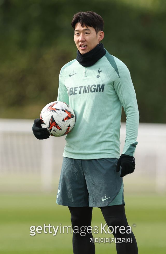13일 2024~25 UEL 16강 2차전 대비 훈련을 소화 중인 토트넘 손흥민. 사진=게티이미지