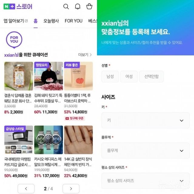 쿠팡과 달리 고객 맞춤정보도 따로 등록할 수 있다는 점도 눈에 띄었다. 네이버플러스 쇼핑은 나이와 성별부터 의류 쇼핑을 위해 필요한 신장, 몸무게, 평소 상의 사이즈 등 구체적인 부분들도 기재해 의류 상품 쇼핑 시 참고할 수 있게 구성됐다.