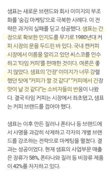 * 샘표 = 간장 브랜드 = 간장맛이 강하다 인식 때문에