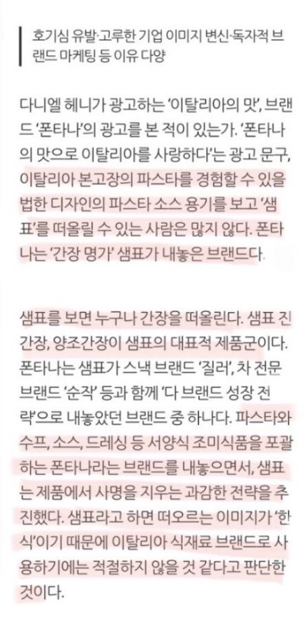 ** 샘표는 브랜드명을 철저히 숨기는 대신 폰타나를 사용하고