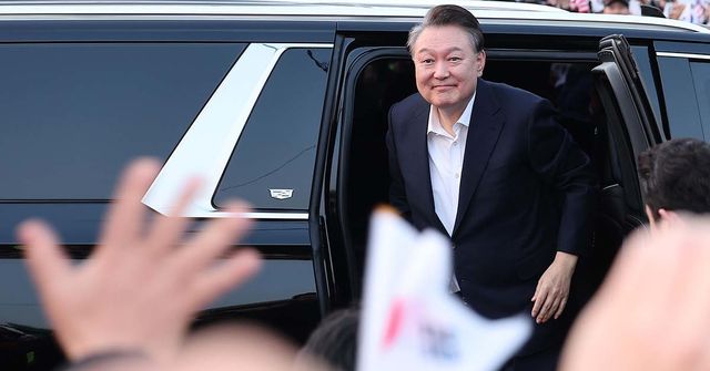 법원의 구속취소 청구 인용으로 석방된 윤석열 대통령이 8일 오후 서울 용산구 한남동 대통령 관저 앞 지지자들에게 인사하기 위해 하차하고 있다. / 연합뉴스