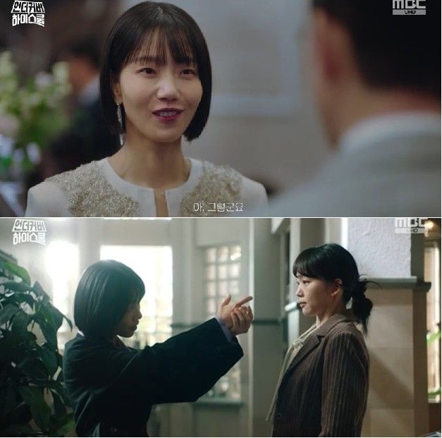 명주와 기간제 교사 오수아(진기주)의 관계도 심상치 않다. 8회에서 명주는 내신 비리 파일을 얻게 된 수아에게 청일전쟁을 예를 들며 상사의 명령에 따를 것을 지시했다.