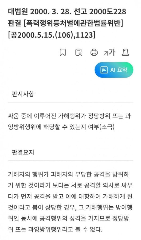 정당방위, 과잉방위 없이 상해판정
