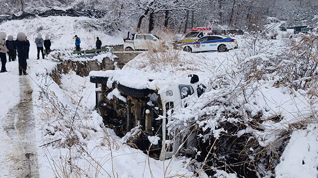경찰은 A씨가 눈길에 미끄러져 수로에 빠진 차량을 꺼내려다 차량이 완전히 넘어가면서 아래에 깔린 것으로 보고 사고 경위를 조사하고 있다.