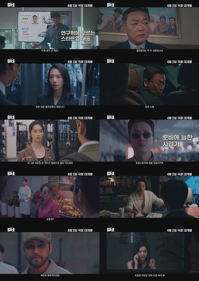이번에 공개된 팀 대결 예고편은 돈다발과 명품 시계의 등장과 함께 "로비하자고요. 로비"라는 스타트업 대표 창욱(하정우 분)의 대사로 시작해 눈길을 사로잡는다.