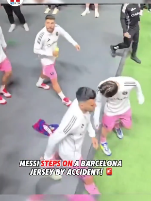(엑스포츠뉴스 나승우 기자) 리오넬 메시(인터 마이애미)가 친정팀 바르셀로나 유니폼을 밟고 지나가는 사고가 발생했다.