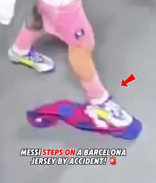 메시가 경기 전 워밍업 도중 팬들이 던진 바르셀로나 유니폼을 밟고 지나가는 영상이 찍힌 것이다.