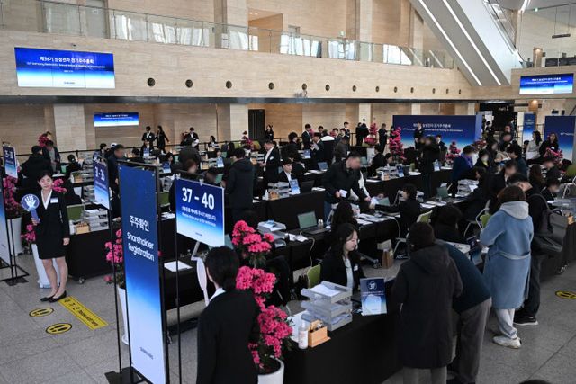 19일 경기도 수원 수원컨벤션센터에서 열린 삼성전자 주주총회 주주와의 대화 시간에 전영현 삼성전자 반도체부문장(부회장)은 삼성전자 주가가 여전히 5만원대에 머물러있다는 지적에 이같이 대답했다. 삼성전자(005930) 주가는 지난해 10월15일(종가 기준) 이후 5만원대로 떨어진 이후 약 5개월째 5만전자를 벗어나지 못하고 있다.