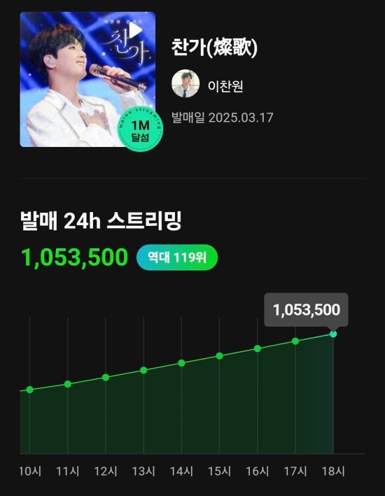 (엑스포츠뉴스 이정범 기자) 이찬원의 콘서트 라이브 앨범이 멜론 밀리언즈 앨범에 등극했다.